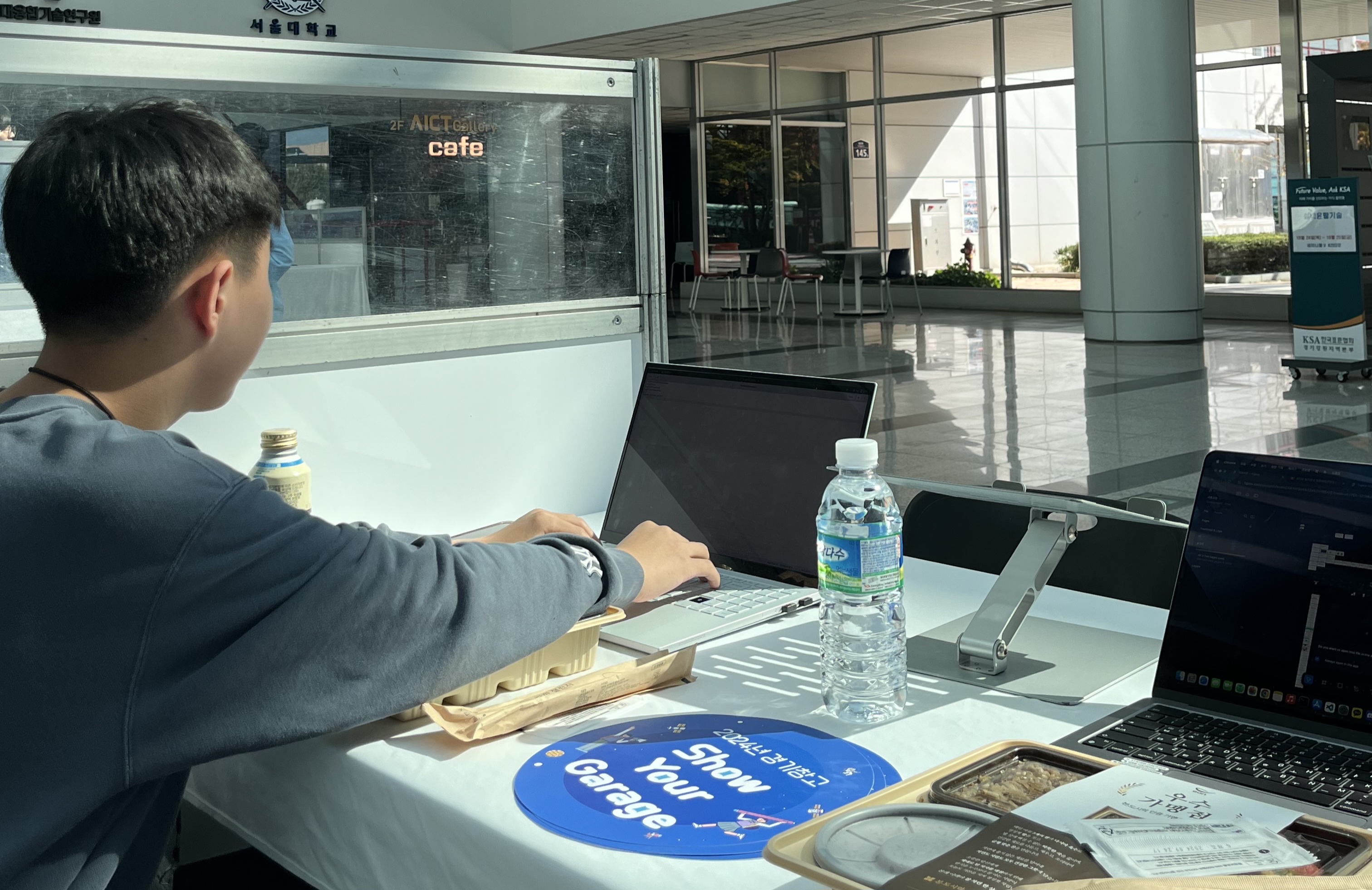 결선 행사 또한 융기원에서 오전 10:30에 진행했습니다. 10분 정도 OT를 진행한 후, 약 2시간 30분(점심시간 포함)동안 결선 부스를 준비하는 시간이 주어졌습니다. 저희 팀은 해당 시간에 파이널 테스트를 진행하고, 버그를 고쳤습니다. 또한, 결선 행사장에서는 발표를 위한 물품이 따로 제공되지 않았습니다. 시연에 사용한 노트북 2대, 휴대폰 1대를 사전에 지참하였습니다.