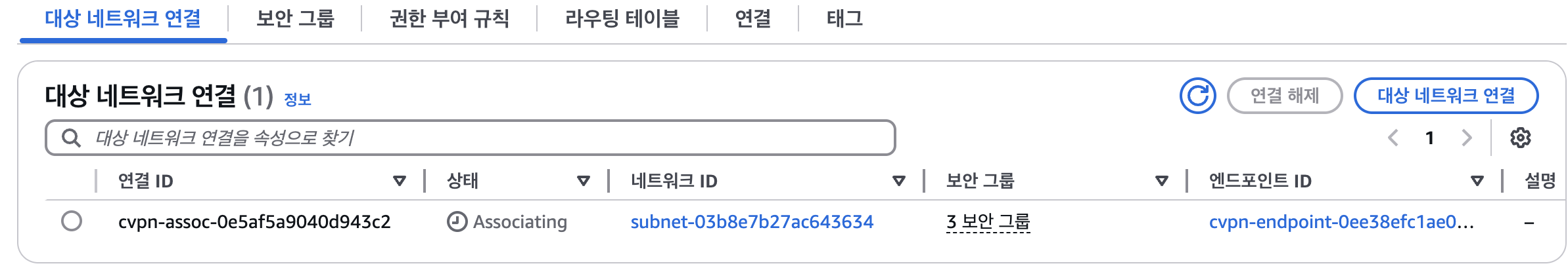 엔드포인트를 생성한 후, 대상 네트워크 연결에서 아래와 같이 private subnet을 연결해줍니다.
