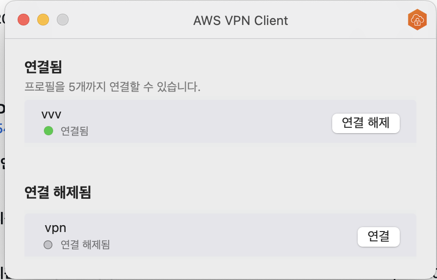 VSCode를 끄고, AWS VPN Client를 열어줍니다.